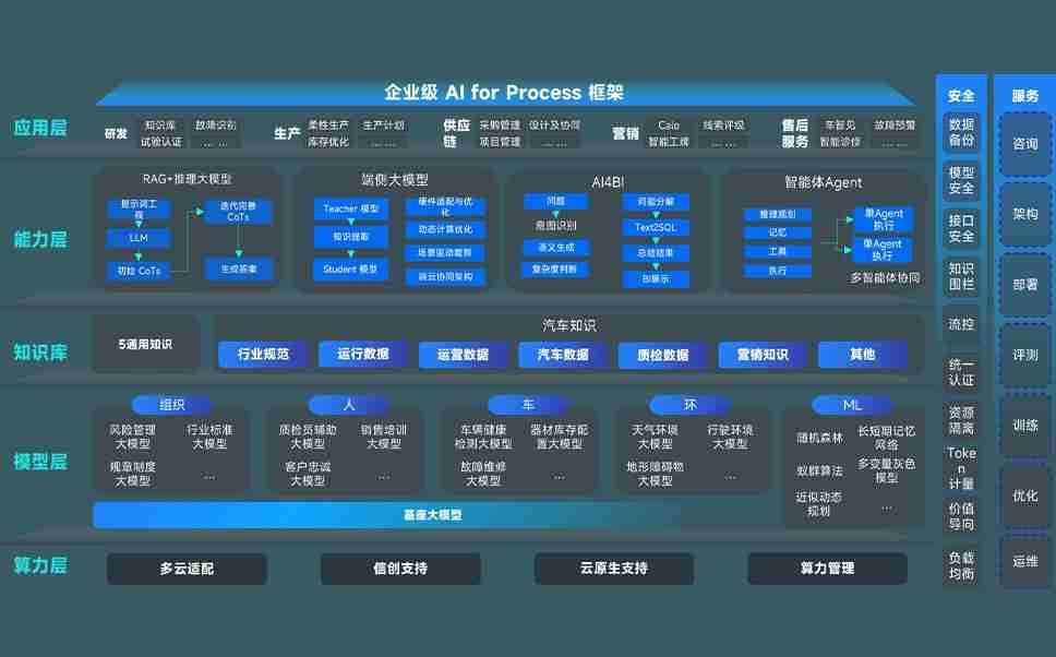 端到端的一站式AI工作空间深度融合了从企业战略规划到日常经营的全流程业务板块,,,定向解决车企内部领域多、、、部门多、、、链条长、、、场景碎片化等难题,,,,支持车企快速构建以AI为核心的生产力写作体系,,,实现任务执行与AI能力的无缝集成与交互